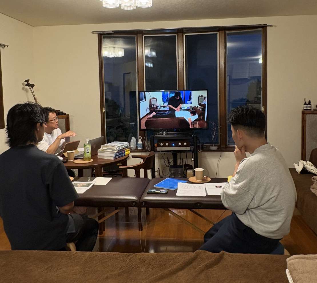 自分のハンドリングや立ち居振る舞いを撮影し、講師(師範)、ファシリテーター、受講者の全員で分析して行きます。 これを繰り返しながら自分自身を再認識することで、触診やハンドリング技術が大きく変化して行きます。