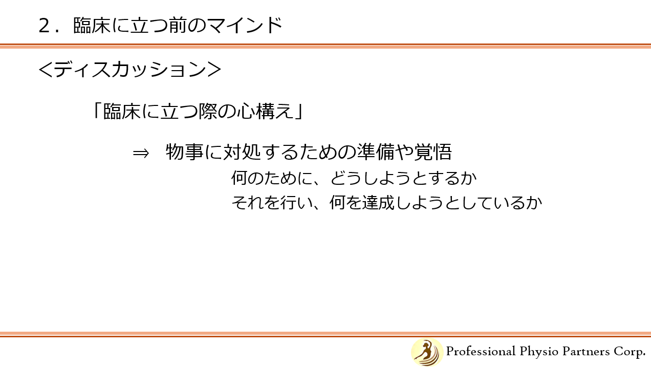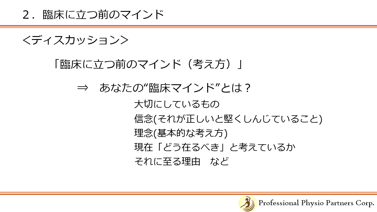 2.臨床に立つ前のマインド~考え方・物事の捉え方と心構え/ディスカッション (10:45-11:45)