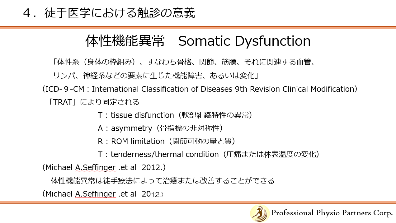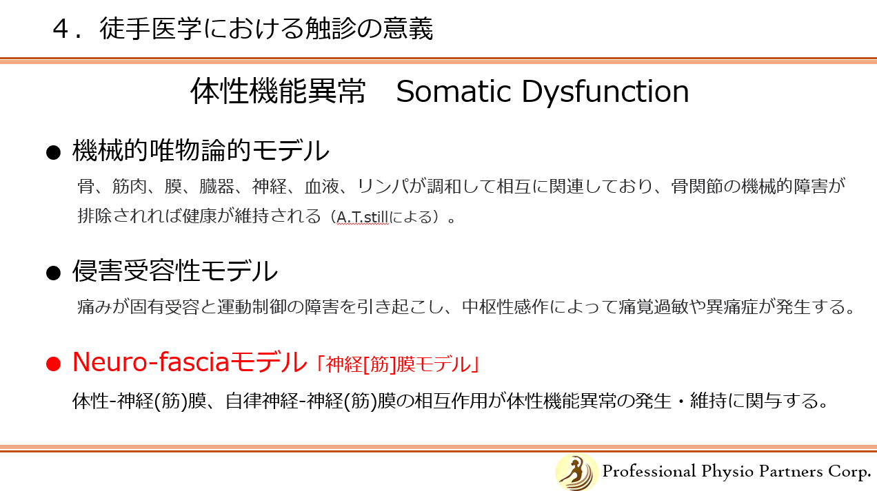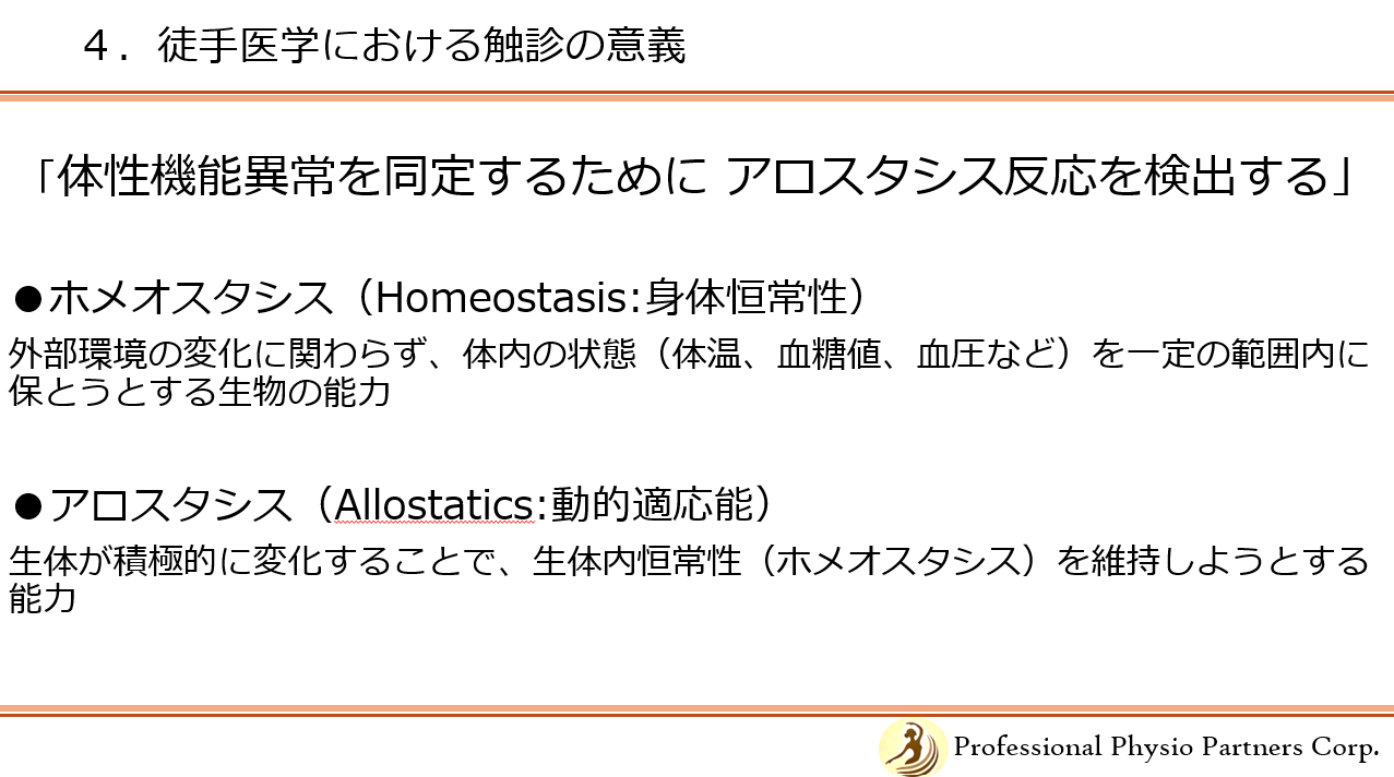 4.徒手医学における触診の意義~体性機能異常を同定するために/アロスタシス反応を検出する (14:45-15:45)