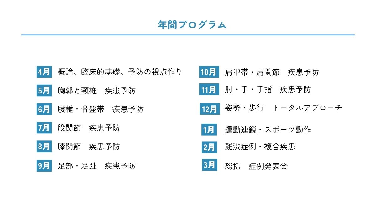 年間プログラム :⾝体を体系的に理解