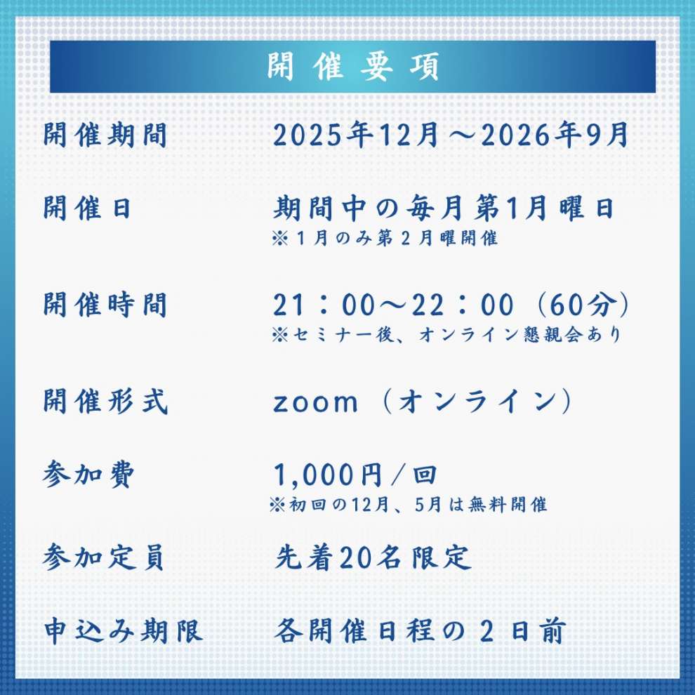 ■開催時間 21:00~22:00(60分) ※セミナー後、オンライン懇親会あり