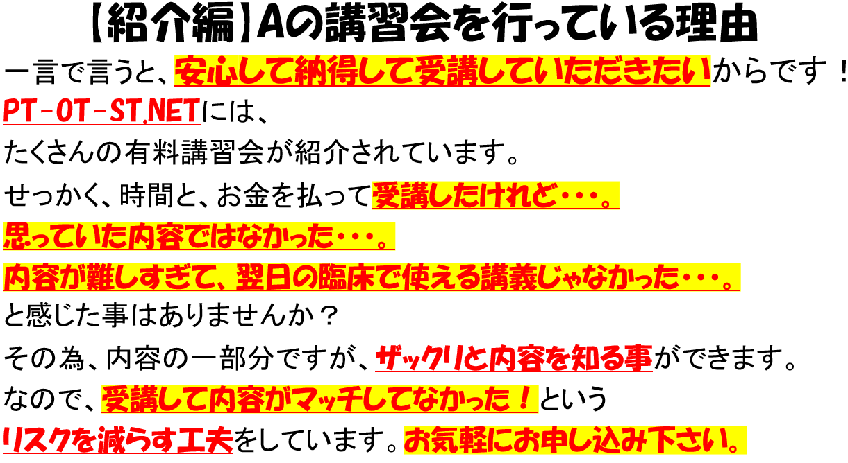 ・他の講習会(セミナー)で学んだけど、内容が難しくて臨床で使えなくてモヤモヤしている