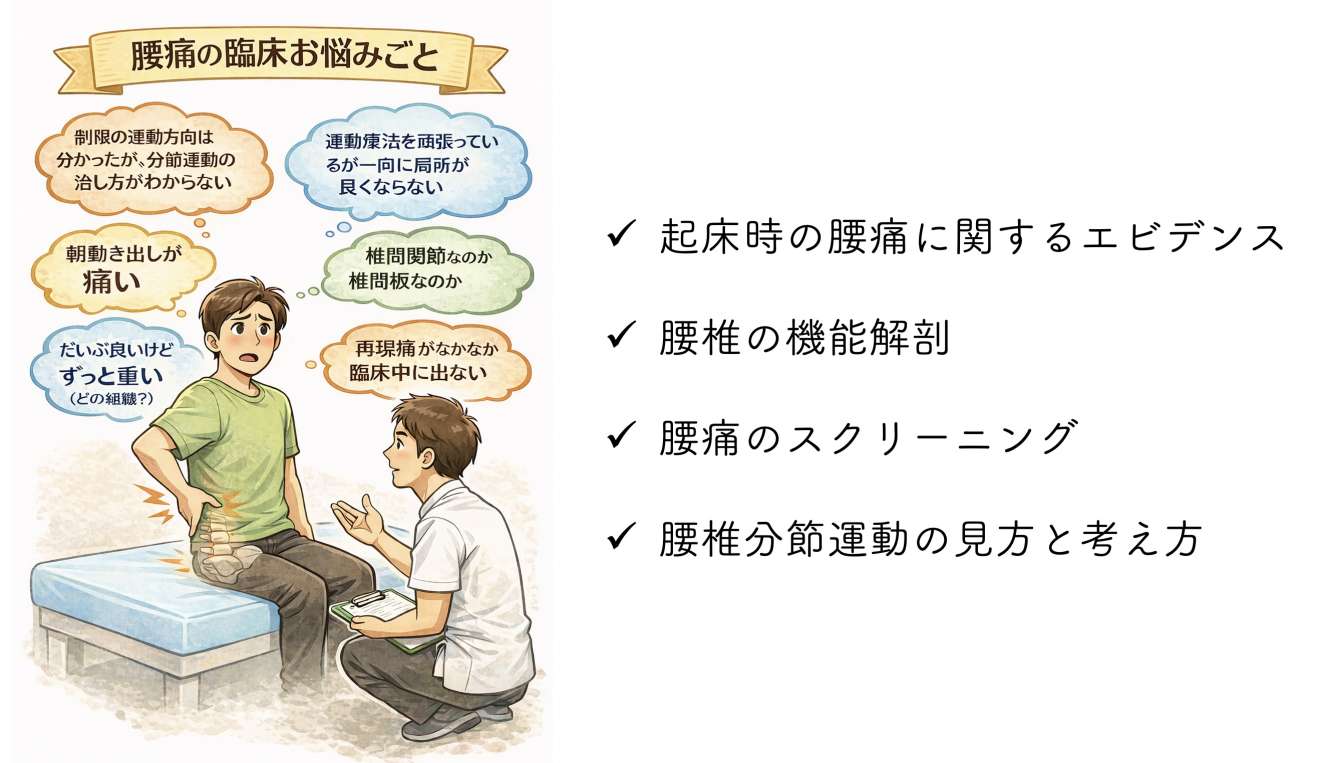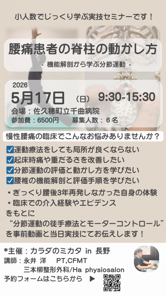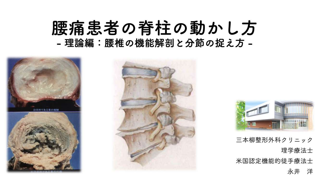 "分節運動の徒手療法と基本動作でのモーターコントロールを回復する運動療法"をお伝えする