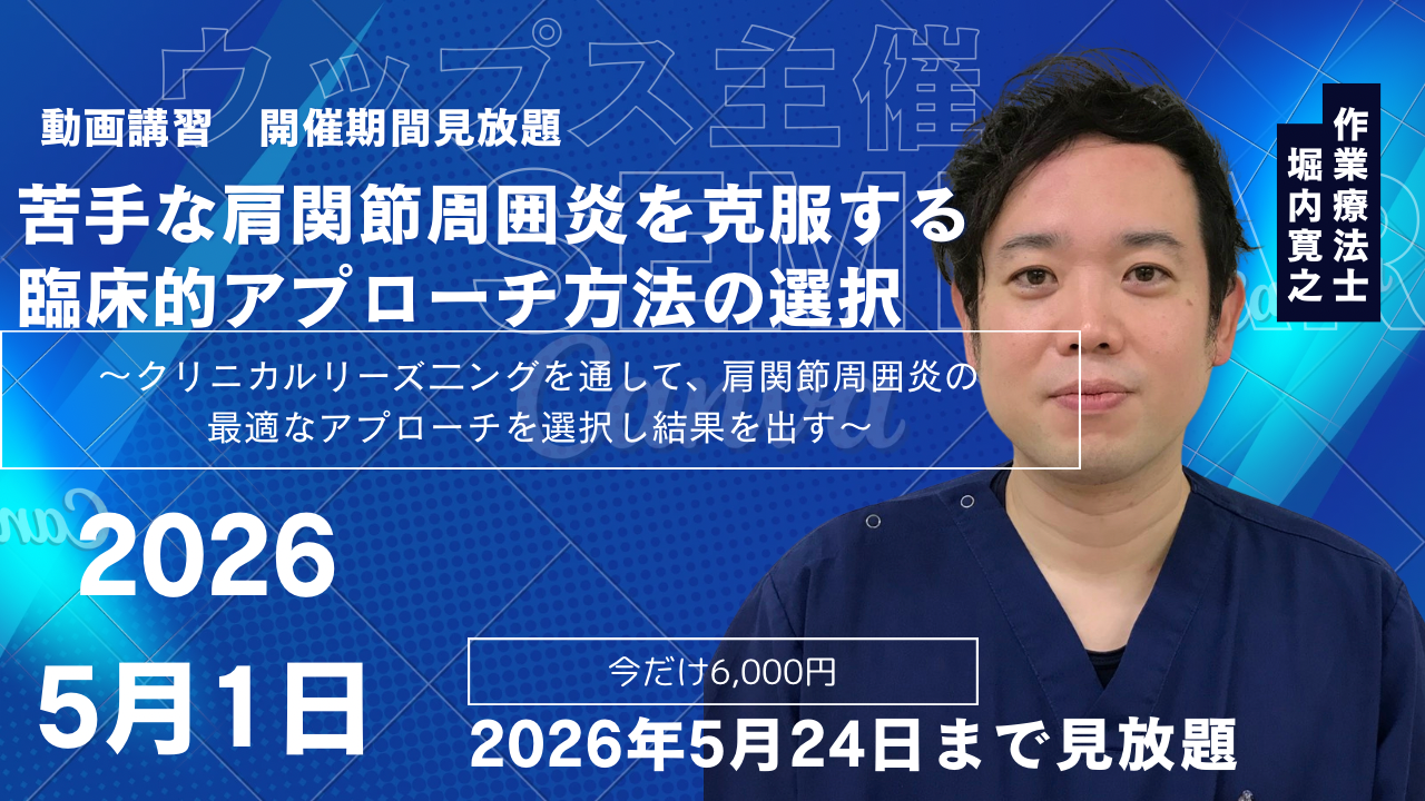 繰り返し見れる動画講習 疾患別アプローチ評価と治療 「苦手な肩関節周囲炎を克服する臨床的アプローチ方法の選択」