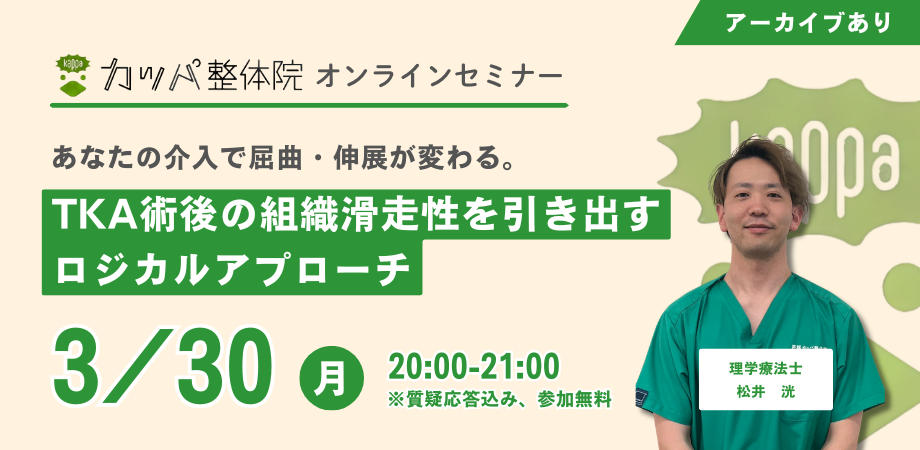あなたの介入で屈曲・伸展が変わる。 TKA術後の組織滑走性を引き出すロジカルアプローチ