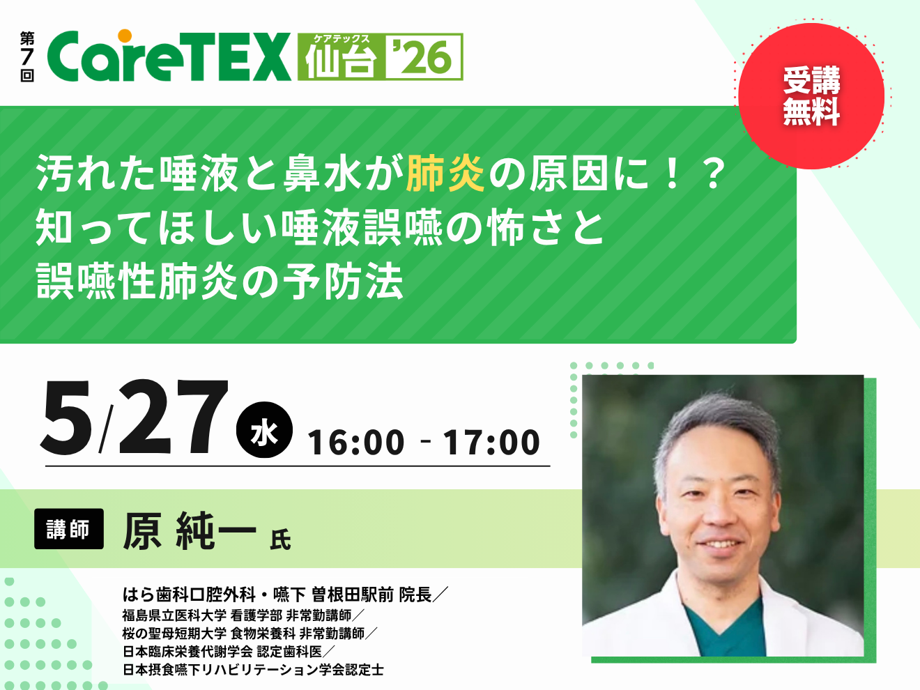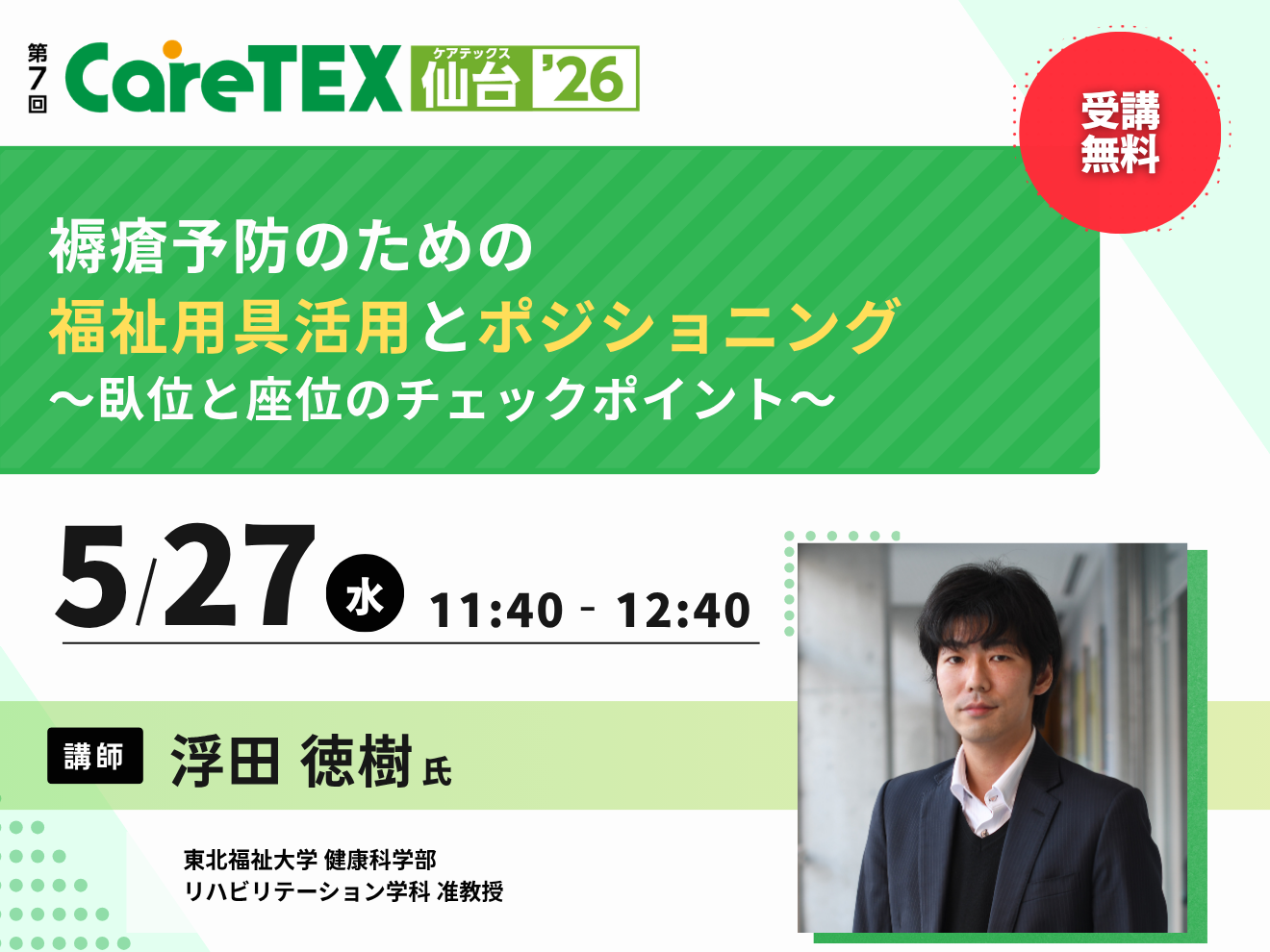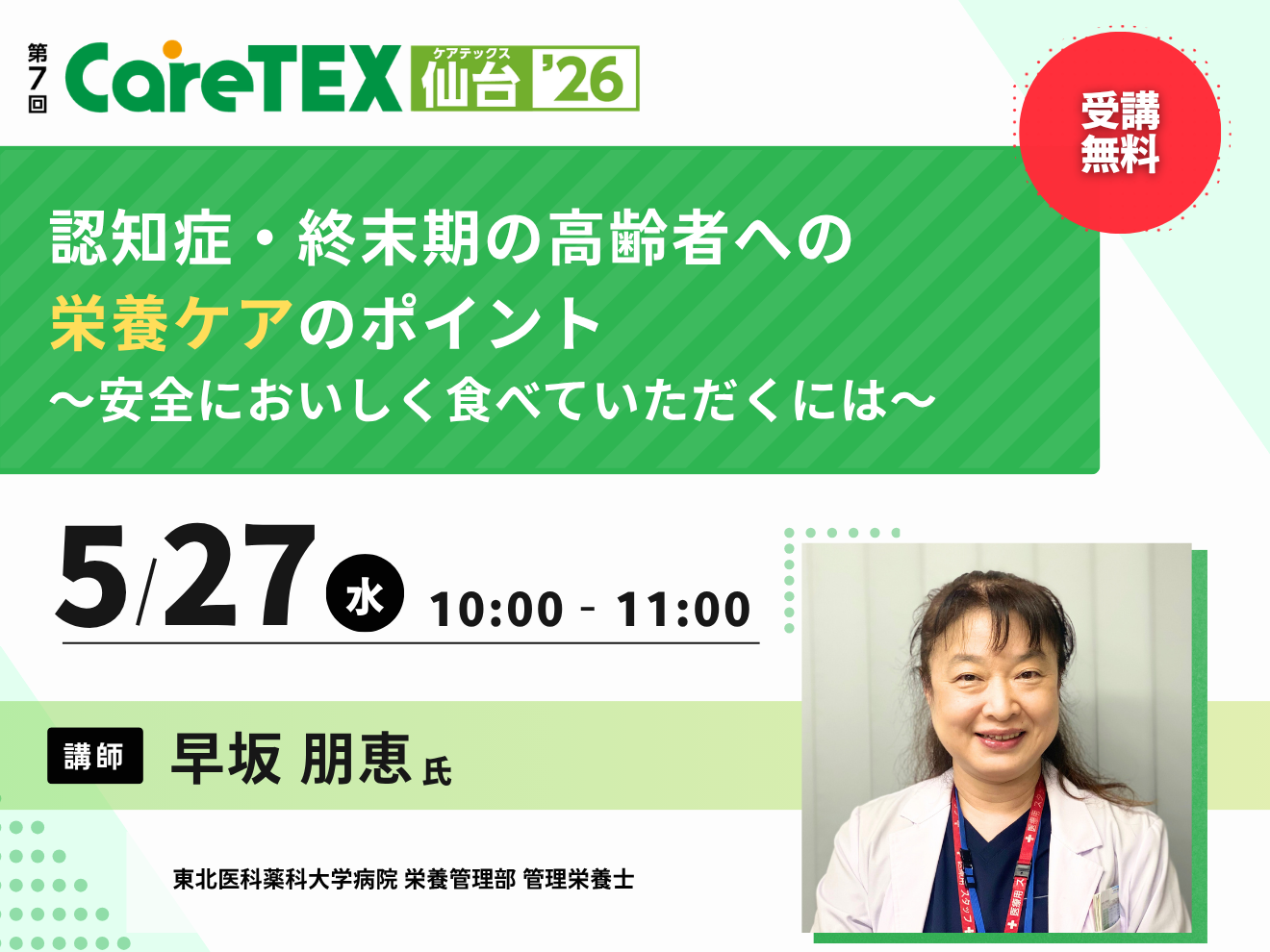 受講料:無料(CareTEX仙台’26の来場事前登録とセミナーの事前申込が必要です)
