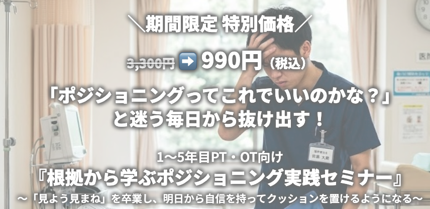 本セミナーは、そんな「なんとなくのポジショニング」から卒業し、「なぜそこにクッションが必要なのか(根拠)」と「具体的にどう置くのか(実践)」をセットで学ぶための特別セミナーです。