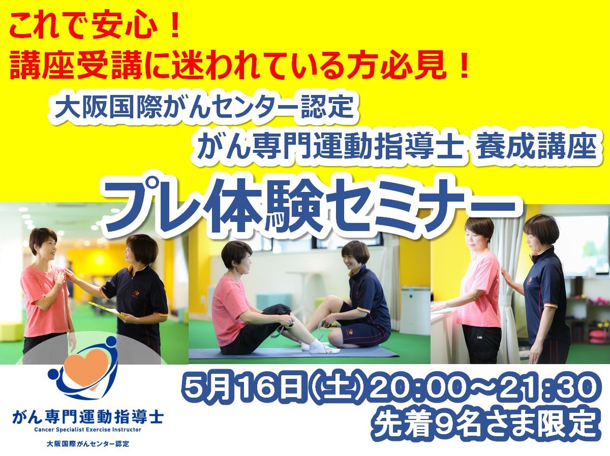 5/16【体験無料】大阪国際がんセンター認定 がん専門運動指導士養成講座 プレ体験セミナー 5/16【体験無料】大阪国際がんセンター認定 がん専門運動…