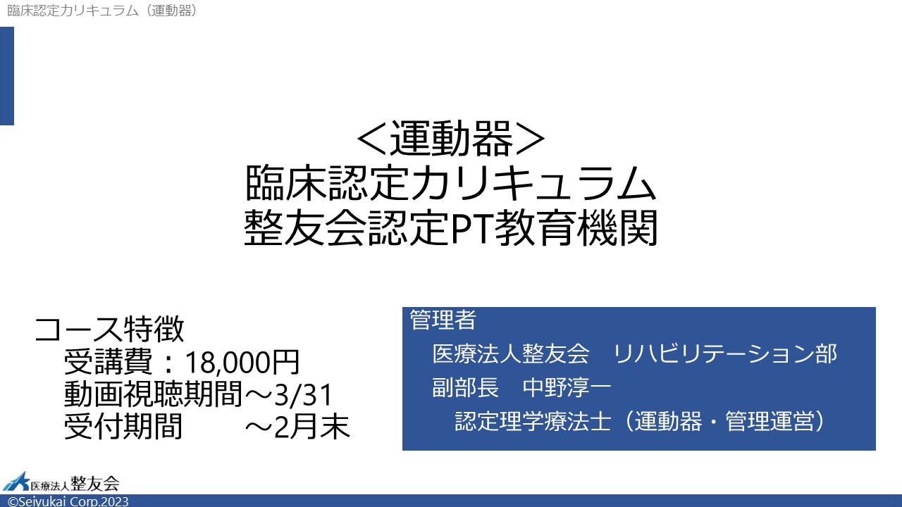 【運動器 認定理学療法士】2026年度 臨床認定カリキュラム