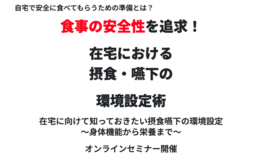 自宅で安全に食事をしてもらうために、リハビリ職はどのように関われば良いかを「在宅に向けて知っておきたい摂食嚥下の環境設定〜身体機能から栄養まで〜」という講義で解説します。