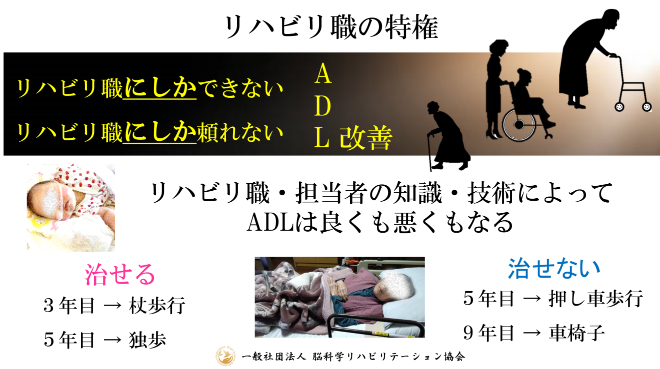 ADLの治療プロッフェッショナル = 全医療職の内、リハビリ職しかできない特権