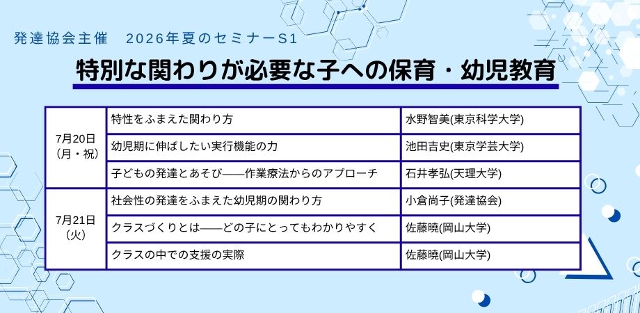 発達協会セミナー【S1 特別な関わりが必要な子への保育・幼児教育】 発達協会セミナー【S1 特別な関わりが必要な子への保育・幼…