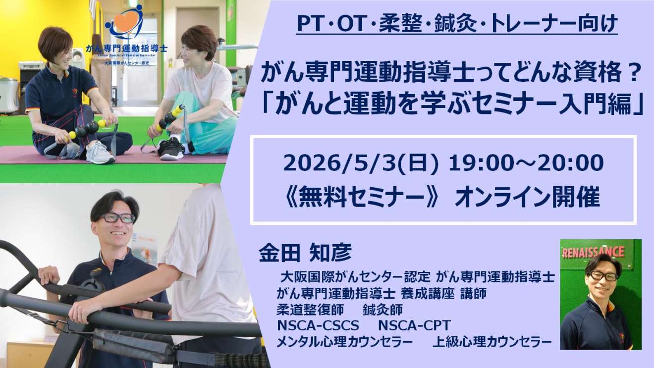 【5/3【無料セミナー】PT・OT・看護・柔整・鍼灸 対象ウェビナー「がん専門運動指導士とはどのような資格?」