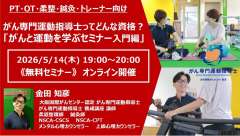 【5/14【無料セミナー】PT・OT・看護・柔整・鍼灸 対象ウェビナー「がん専門運動指導士とはどのような資格?」 【5/14【無料セミナー】PT・OT・看護・柔整・鍼灸 対…
