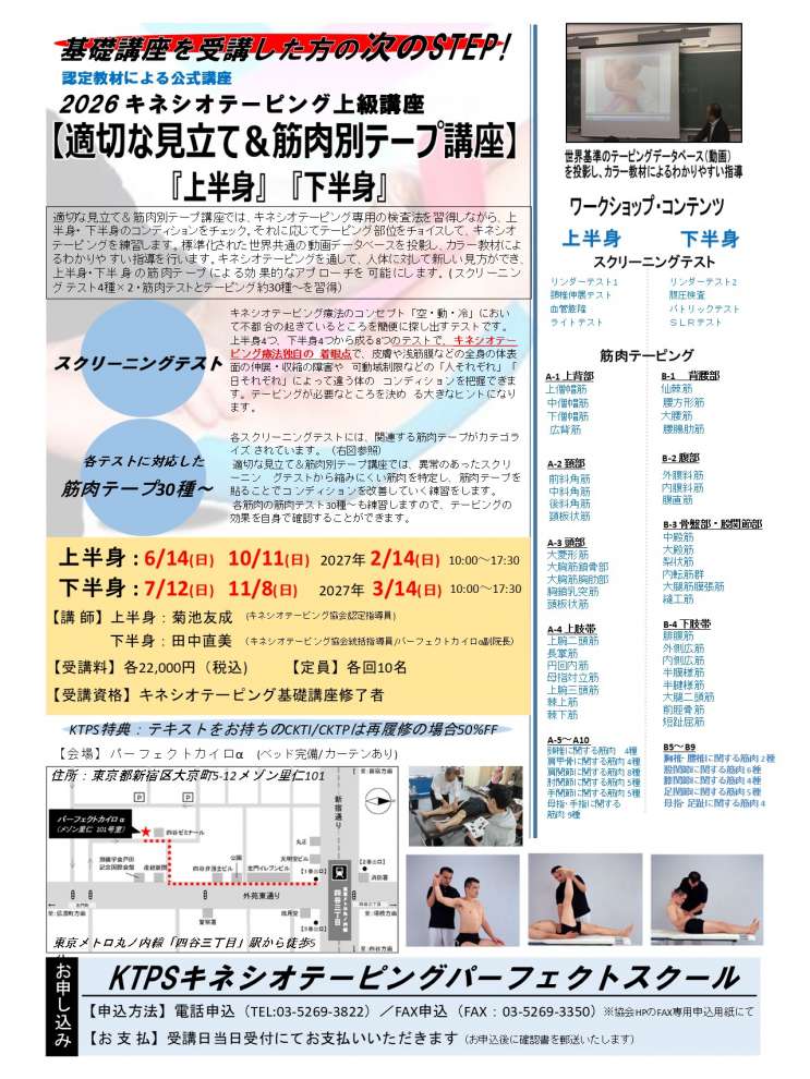 申込先:KTPS キネシオテーピングパーフェクトスクール セミナー係