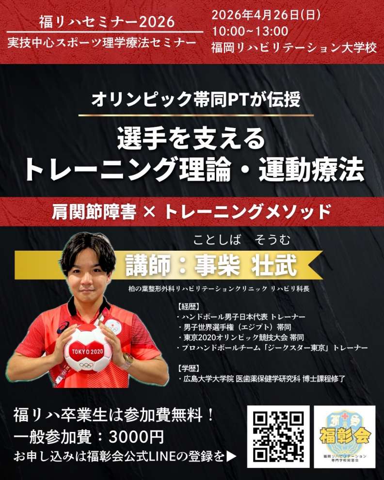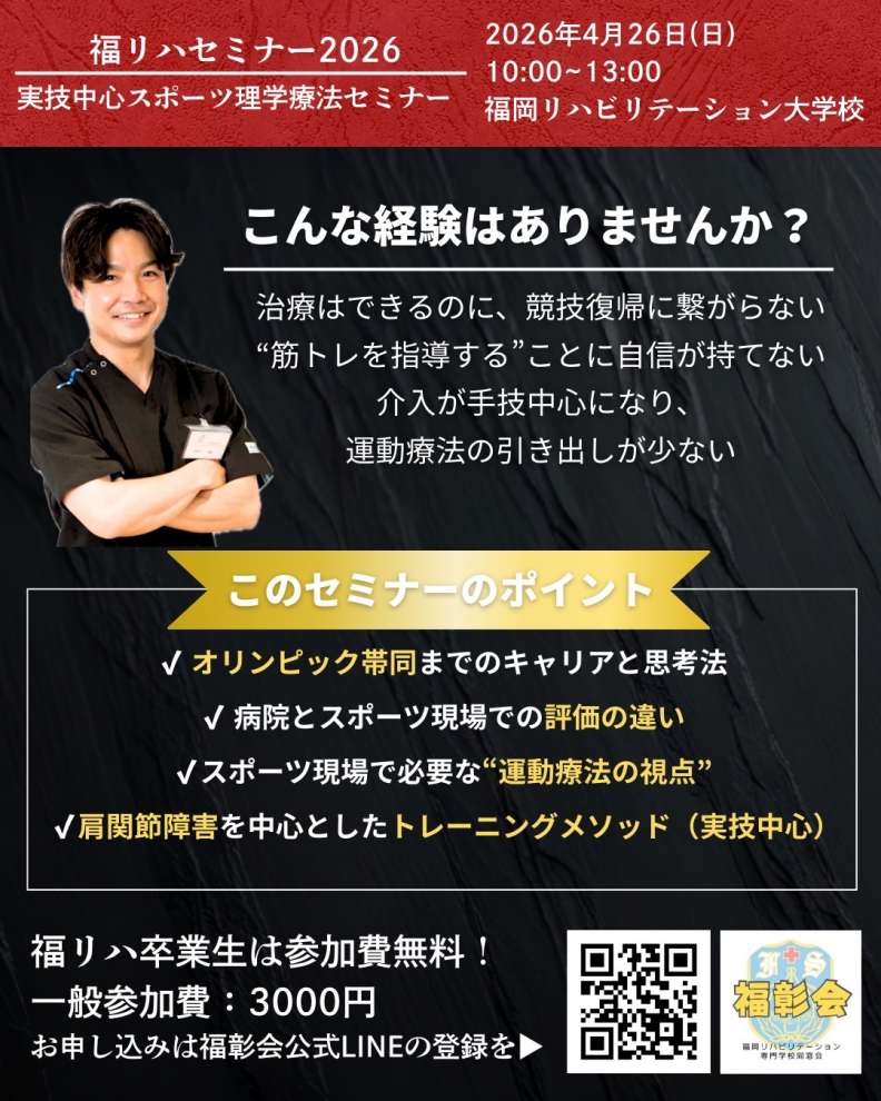 福彰会とは、福岡県博多区にある福岡リハビリテーション専門学校の同窓会。卒業生のみなさんはもちろん、リハビリに携わる方々へ毎年セミナーを企画しています。