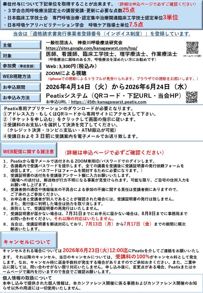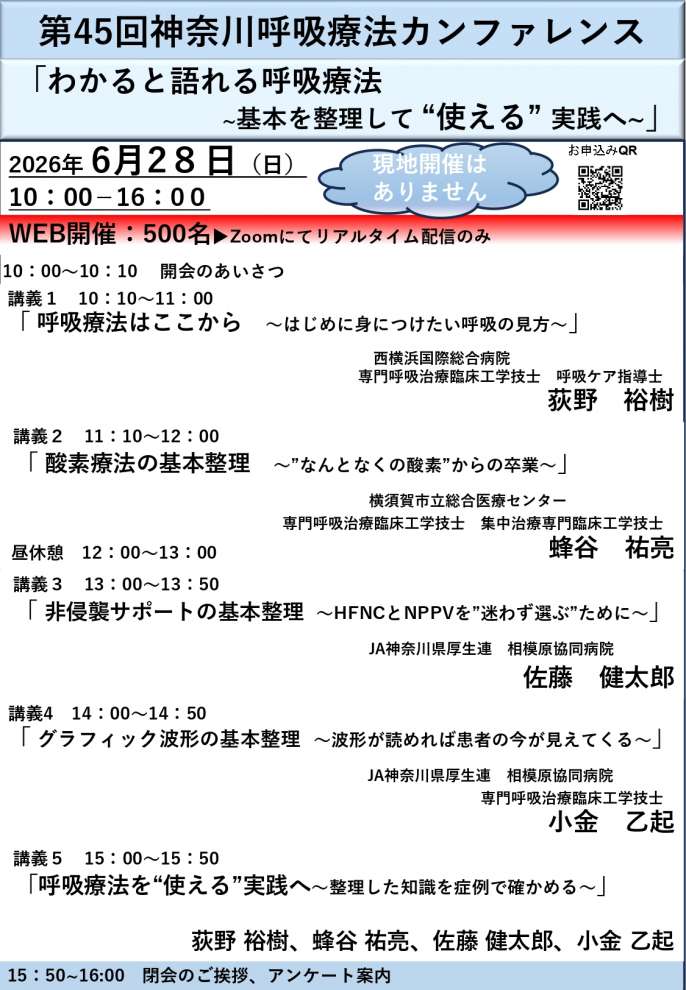主催 :⼀般社団法⼈ 神奈川呼吸療法研究会 https://sites.google.com/kanagawarst.com/top/
