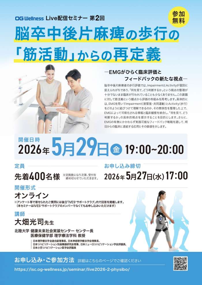 【OG Wellness】第2回Live配信セミナー「脳卒中後片麻痺の歩行の『筋活動』からの再定義 ―EMGがひらく臨床評価とフィードバックの新たな視点―」