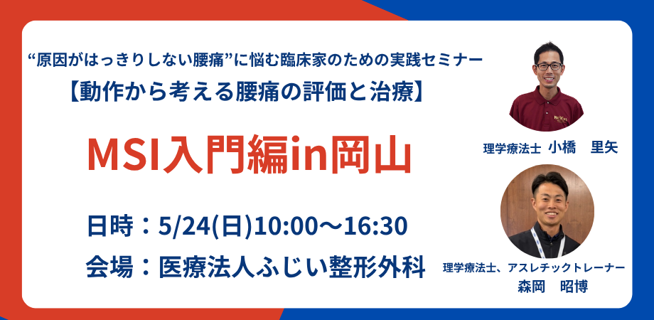 動作から考える腰痛の評価と治療MSI入門編【岡山県開催】