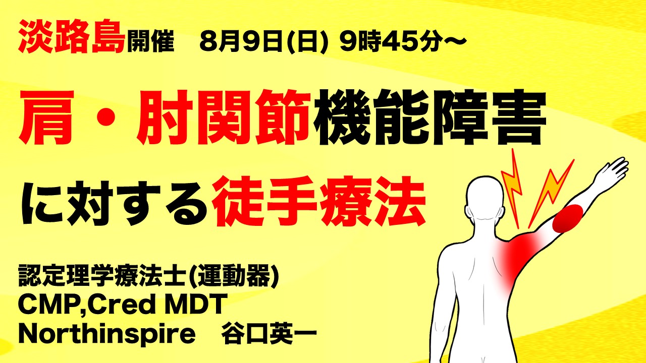 【淡路島 実技研修会】 遭遇する機会の多い肩・肘関節機能障害に対する徒手療法を実技練習を中心に学べます