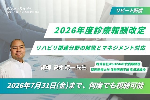 リピート配信 2026年度診療報酬改定 リハビリ関連分野の解説とマネジメント対応(179分)(2026年7月31日まで視聴可能) リピート配信 2026年度診療報酬改定 リハビリ関連分野の…
