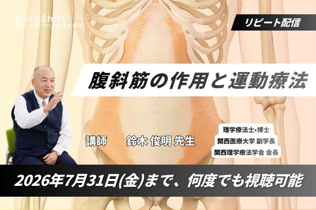 リピート配信 【鈴木俊明先生】腹斜筋の作用と運動療法(118分)(2026年7月31日まで視聴可能) リピート配信 【鈴木俊明先生】腹斜筋の作用と運動療法(11…