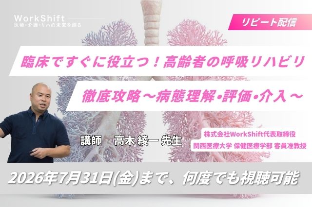 リピート配信 臨床ですぐに役立つ!高齢者の呼吸リハビリ徹底攻略〜病態理解・評価・介入〜(124分)(2026年7月31日まで視聴可能) リピート配信 臨床ですぐに役立つ!高齢者の呼吸リハビリ徹底…