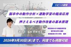 リピート配信 脳卒中の動作分析×運動学習の臨床応用:押さえるべき動作改善の基本原理(121分)(2026年9月30日まで視聴可能) リピート配信 脳卒中の動作分析×運動学習の臨床応用:押さえ…