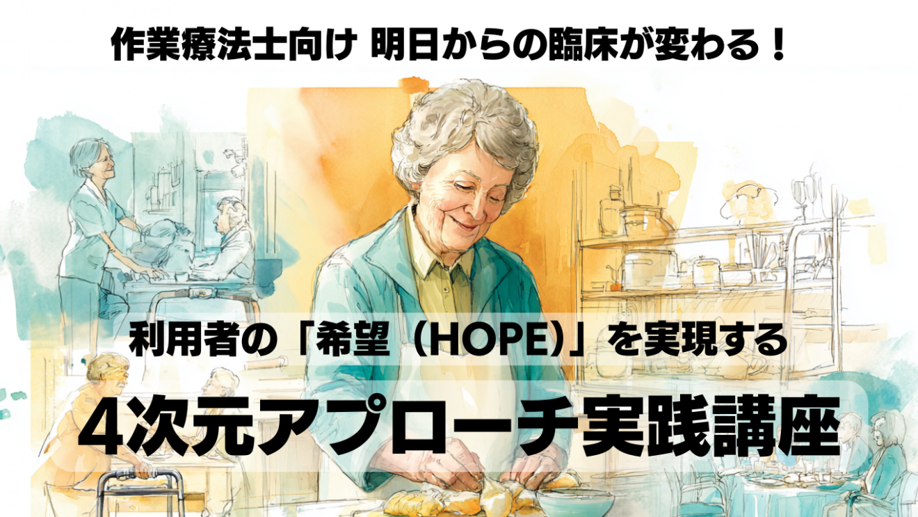 【作業療法士向け】 明日からの臨床が変わる! デイサービスで利用者の「希望(HOPE)」を実現する4次元アプローチ実践講座 【作業療法士向け】 明日からの臨床が変わる! デイサービス…