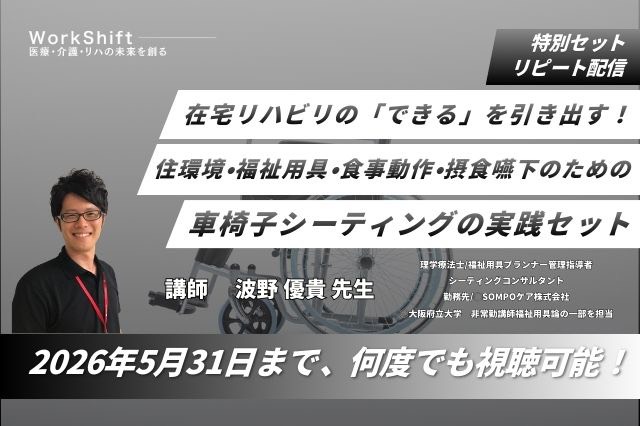 【特別セット】在宅リハビリの「できる」を引き出す!住環境・福祉用具・食事動作・摂食嚥下のための車椅子シーティングの実践セット(2026年5月31日まで視聴可能) 【特別セット】在宅リハビリの「できる」を引き出す!住環境・…