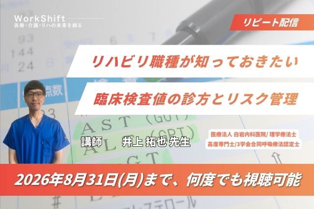 リピート配信 リハビリ職種が知っておきたい臨床検査値の診方とリスク管理(123分)(2026年8月31日まで視聴可能) リピート配信 リハビリ職種が知っておきたい臨床検査値の診方…