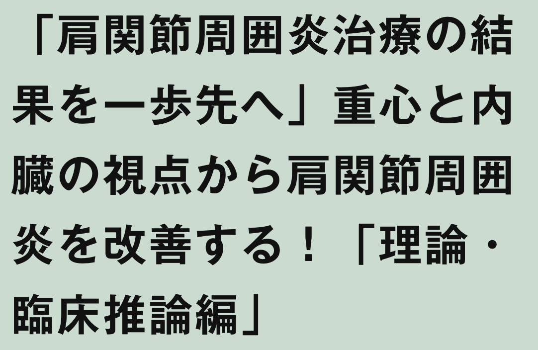 「肩関節周囲炎治療の結果を一歩先へ」重心と内臓の視点から肩関節周囲炎を改善する!「理論・臨床推論編」無料アーカイブ動画