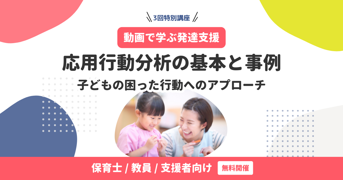 子どもの困った行動へのアプローチをテーマに、応用行動分析の基本と事例を学ぶ全3回の講座をご視聴いただける無料アーカイブ配信です。