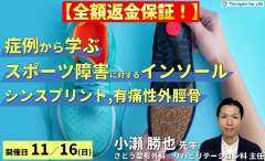 【切って、貼って、変化する!】症例から学ぶインソール療法の深掘り【スポーツ障害編】~シンスプリント・有痛性外脛骨に対するリハビリテーション~ 講師:小瀬勝也先生