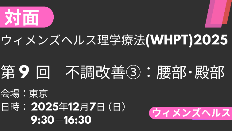 〈ウィメンズヘルス〉2025年12月07日 ウィメンズヘルス理学療法2025〈東京〉腰部・臀部の不調改善 〈ウィメンズヘルス〉2025年12月07日 ウィメンズヘル…