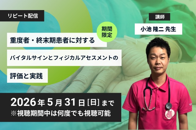 リピート配信 重度者・終末期患者に対するバイタルサインとフィジカルアセスメントの評価と実践(127分)(2026年5月31日まで視聴可能) リピート配信 重度者・終末期患者に対するバイタルサインとフ…