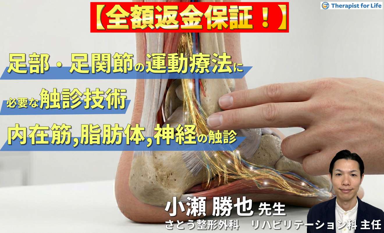 【※期間限定見逃し配信】足部・足関節の評価・運動療法に必要な臨床的触診技術2【内在筋・脂肪体・神経の触診】〜骨・筋軟部組織・神経の触診を臨床で活かすコツ~ 講師:小瀬勝也先生 【※期間限定見逃し配信】足部・足関節の評価・運動療法に必要…
