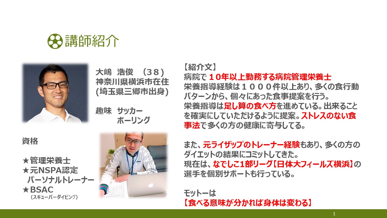 講師:大嶋浩俊先生(元ライザップ専属トレーナー/管理栄養士)