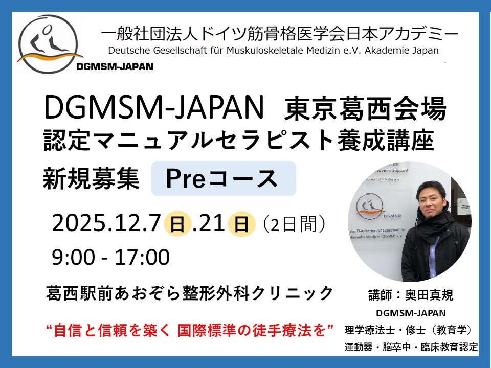 【東京葛西開催】DGMSM-JAPAN認定マニュアルセラピスト養成講座 Preコース 【東京葛西開催】DGMSM-JAPAN認定マニュアルセラピ…
