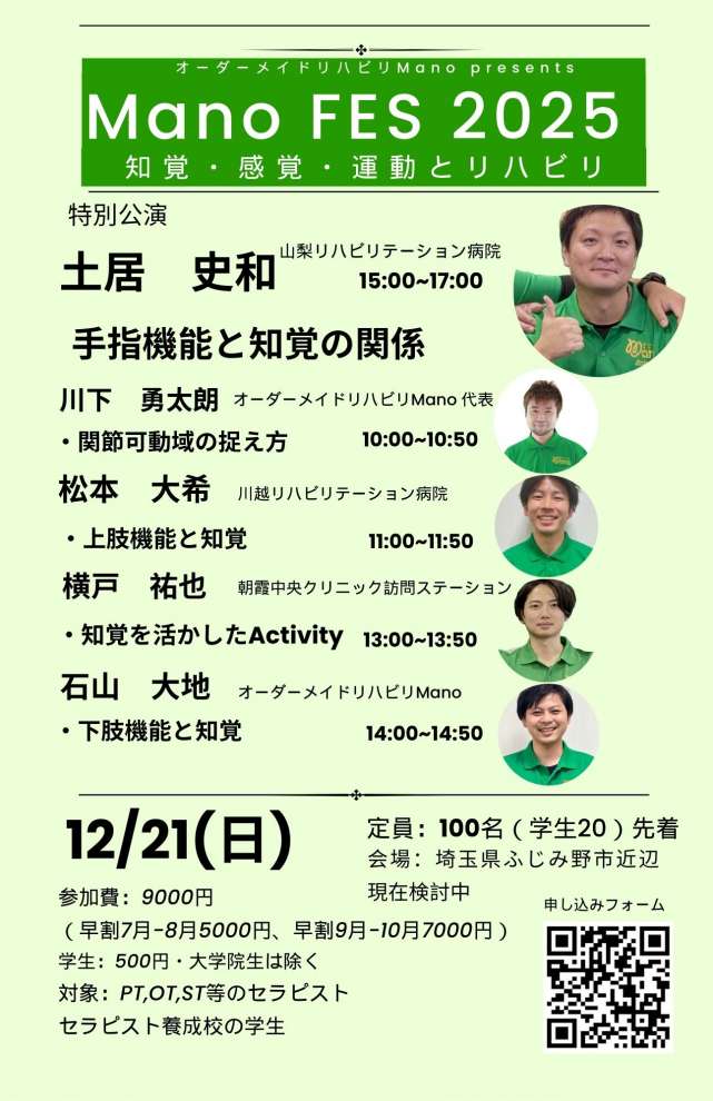 毎年人気の山梨リハビリテーション病院の土居史和先生をお呼びしての1日研修会 今年は100人規模でMano講師陣とお送りする 〜知覚・感覚・運動とリハビリ〜 ぜひチェックして下さい