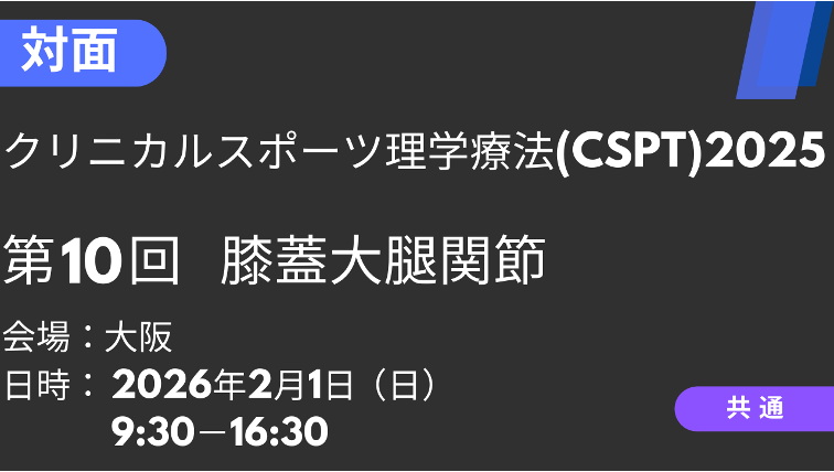 〈クリニカルスポーツ理学療法(CSPT)2025〉大阪会場 -膝蓋大腿関節に対するリアライン- 〈クリニカルスポーツ理学療法(CSPT)2025〉大阪会場…