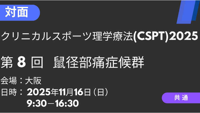 〈クリニカルスポーツ理学療法(CSPT)2025〉大阪会場 -鼠径部痛に対するリアライン- 〈クリニカルスポーツ理学療法(CSPT)2025〉大阪会場…