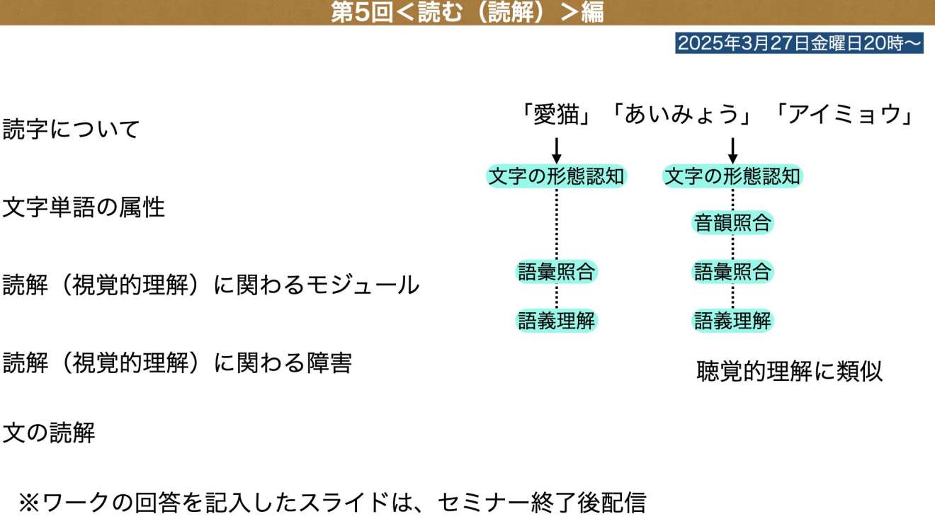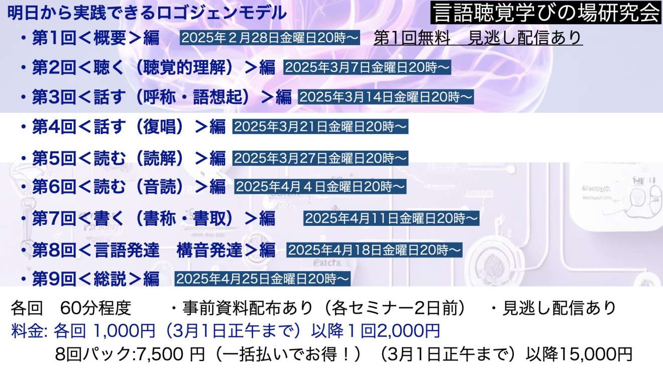 失語症や言語発達に関心をお持ちの皆様へ。 "本当に使える知識" を、60分×9本(計540分)の濃密なセミナーと約540枚のスライド資料でお届けしま