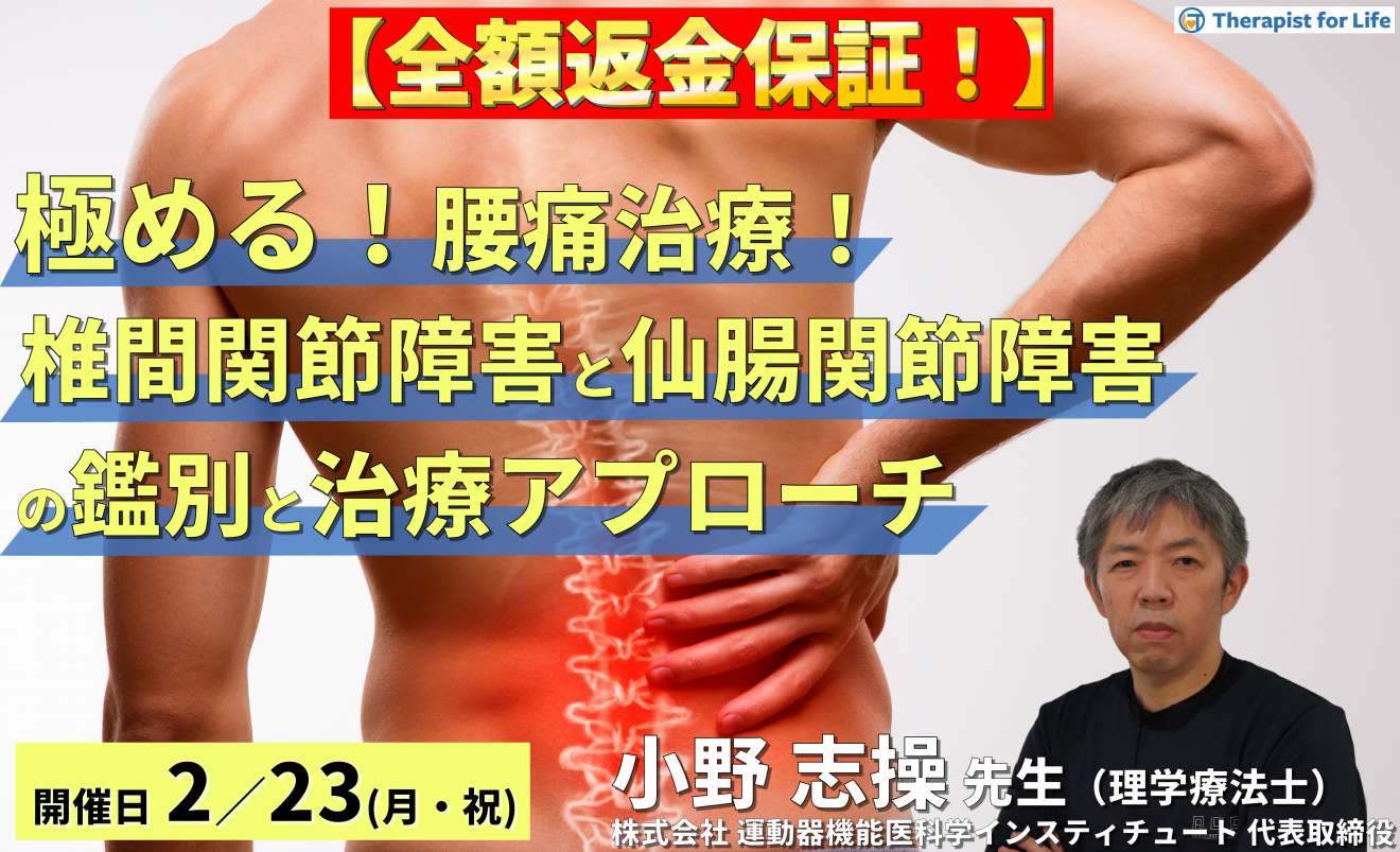 ※期間限定見逃し配信【極める!運動器リハビリテーション】椎間関節障害と仙腸関節障害に対する理学療法~病態鑑別と適切な治療アプローチの実際~ 講師:⼩野志操先生