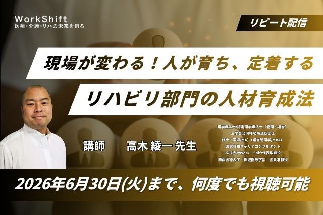 リピート配信 現場が変わる!人が育ち、定着するリハビリ部門の人材育成法(140分)(2026年6月30日まで視聴可能) リピート配信 現場が変わる!人が育ち、定着するリハビリ部門…