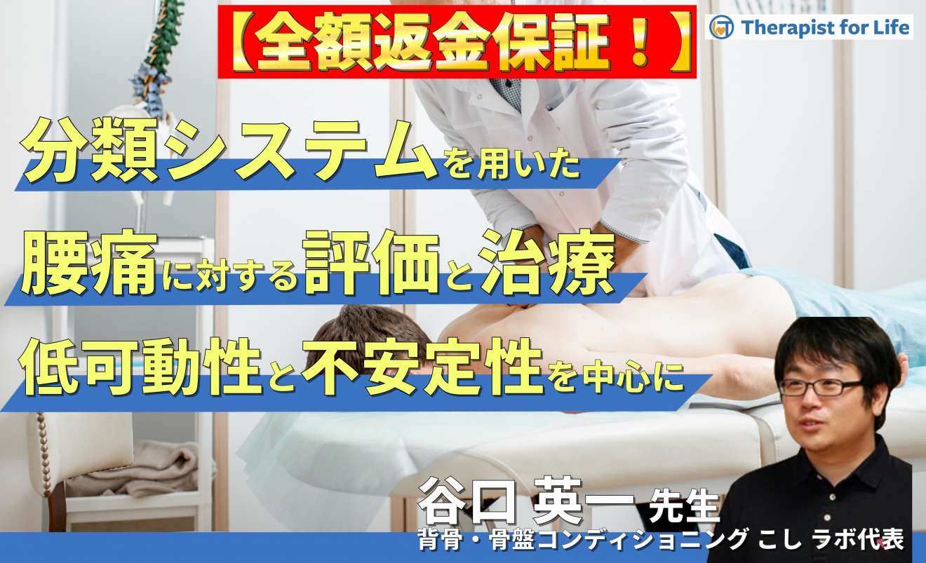 【※期間限定見逃し配信】分類システムを用いた腰痛に対する評価と治療(主に低可動性と不安定性) 講師:谷口英一先生