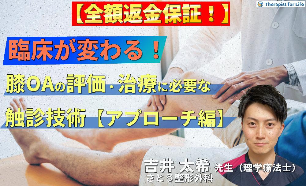 ※期間限定見逃し配信【臨床が変わる!】膝OAの評価・運動療法を極めるために必要な触診と治療技術〜治療戦略とアプローチ編~ 講師:吉井太希先生 ※期間限定見逃し配信【臨床が変わる!】膝OAの評価・運動療…