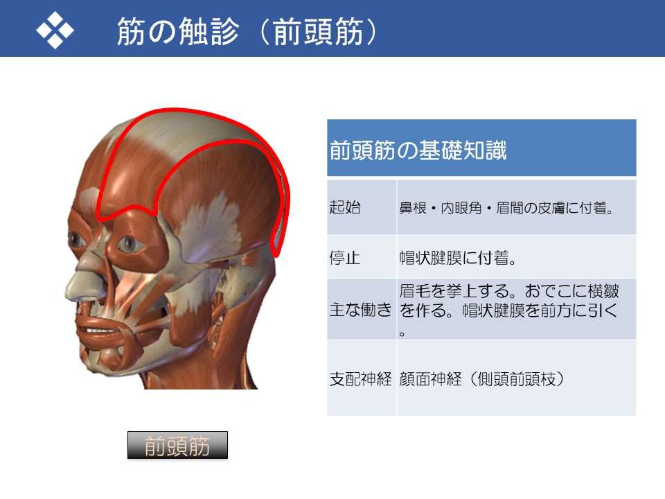 ・顔面上部の触診とアプローチ~眼輪筋・前頭筋~(実技)