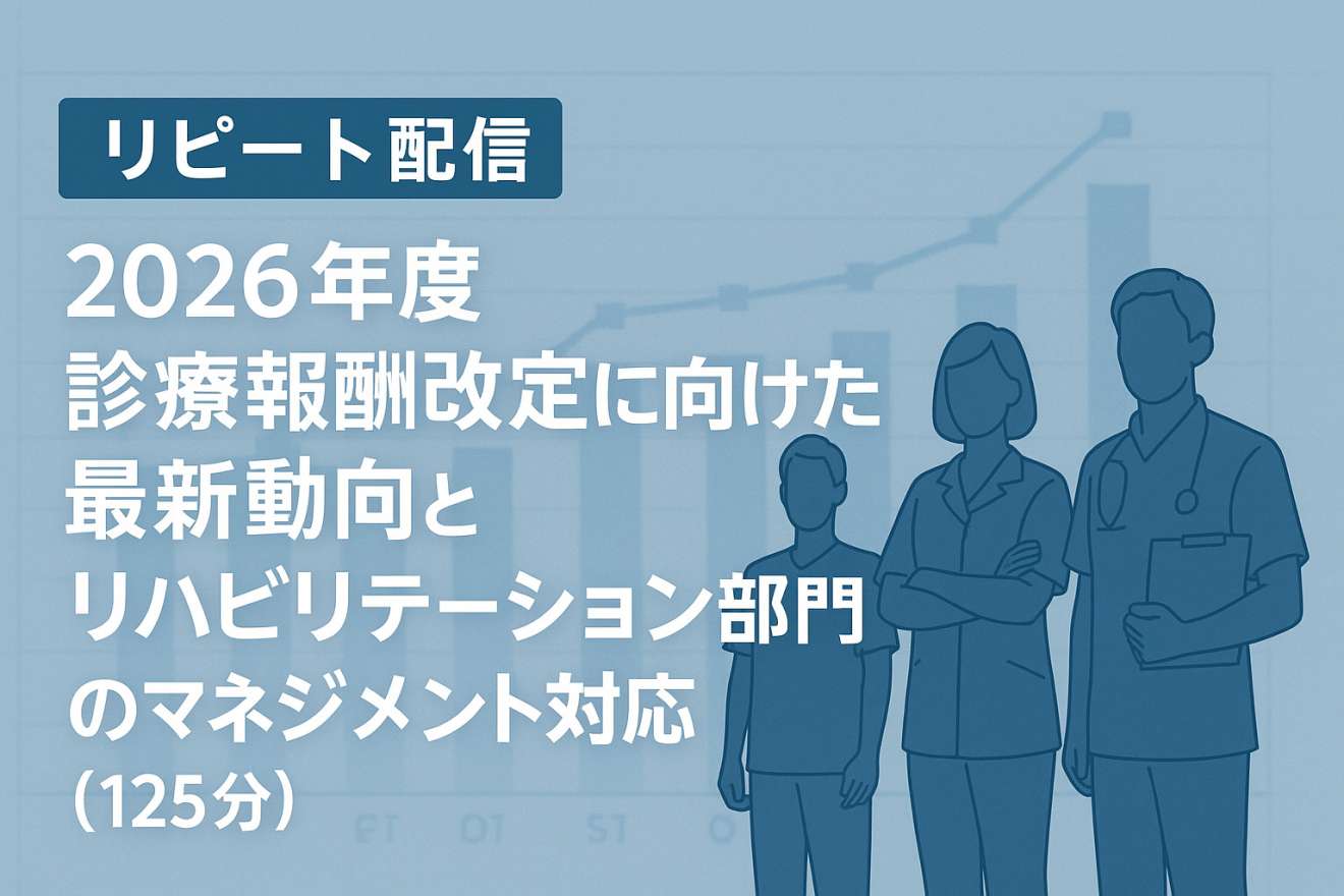 リピート配信 2026年度診療報酬改定に向けた最新動向とリハビリテーション部門のマネジメント対応(125分)(2026年1月20日まで視聴可能) リピート配信 2026年度診療報酬改定に向けた最新動向とリ…