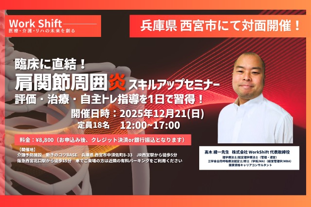 臨床に直結!肩関節周囲炎 スキルアップセミナー〜評価・治療・自主トレ指導を1日で習得!〜 臨床に直結!肩関節周囲炎 スキルアップセミナー〜評価・治療…